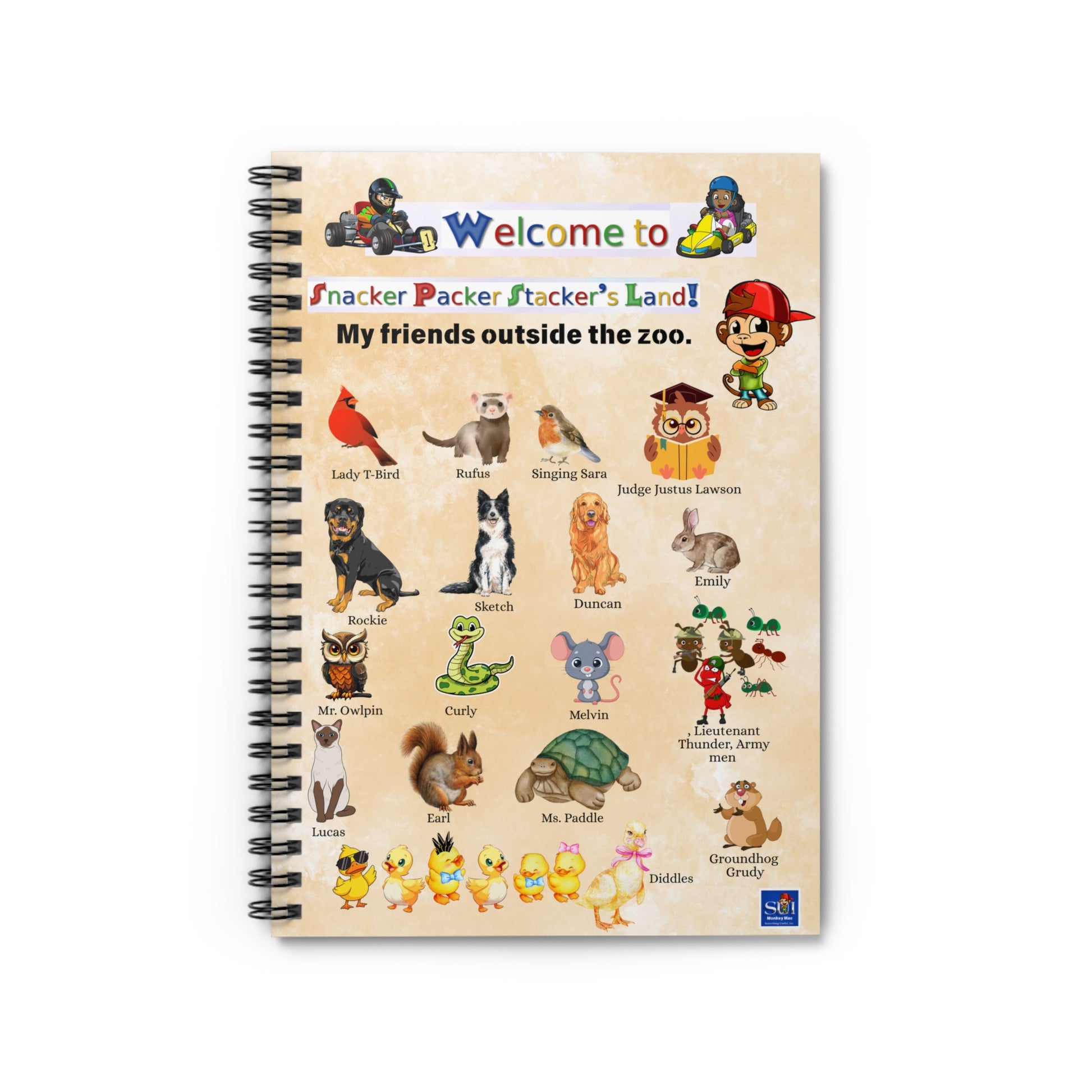 Welcome to Snacker Packer Stacker's Land Spiral Notebook — Kids Animal Character Ruled Journal